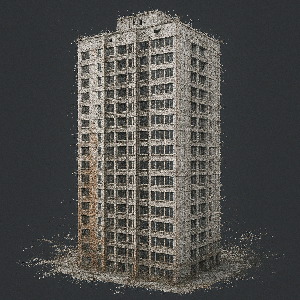 High-resolution drone scanning for structural damage detection, crucial for building management and insurance assessment.